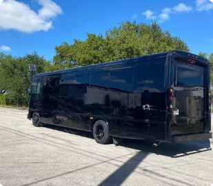 Looking for a party on wheels? Look no further. This party bus has all the amenities you could ever want on a bus. This mobile palace comes equipped with granite bars, programmable laser lights, smoke machines, a massive video wall, and a state of the art sound system that will blow you away.